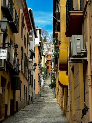 Die Geschichte hinter den altmodischen und schönen weißen Häusern Albaicíns, dem ehemaligen arabischen Viertel, war sehr interessant. In den Gassen herrschte eine tolle Atmosphäre, aus vielen kleinen Ladenlokalen ertönte Musik, viele der Läden waren bunt dekoriert. Auch ein Markt mit handgefertigten Schmuckstücken, Portemonnaies und anderen Dingen durfte während unserer Spanien-Erfahrung nicht fehlen. Wir kamen aus Zufall an der Aufführung eines Theaterstücks von einer lokalen Schule vorbei und schauten uns dieses an. Auch konnten wir immer mehr über die Geschichte des Viertels erfahren. In diesem Rahmen wurden uns interessante Fakten erzählt, z.B. warum die dortigen Gebäude alle weiß gestrichen sind.